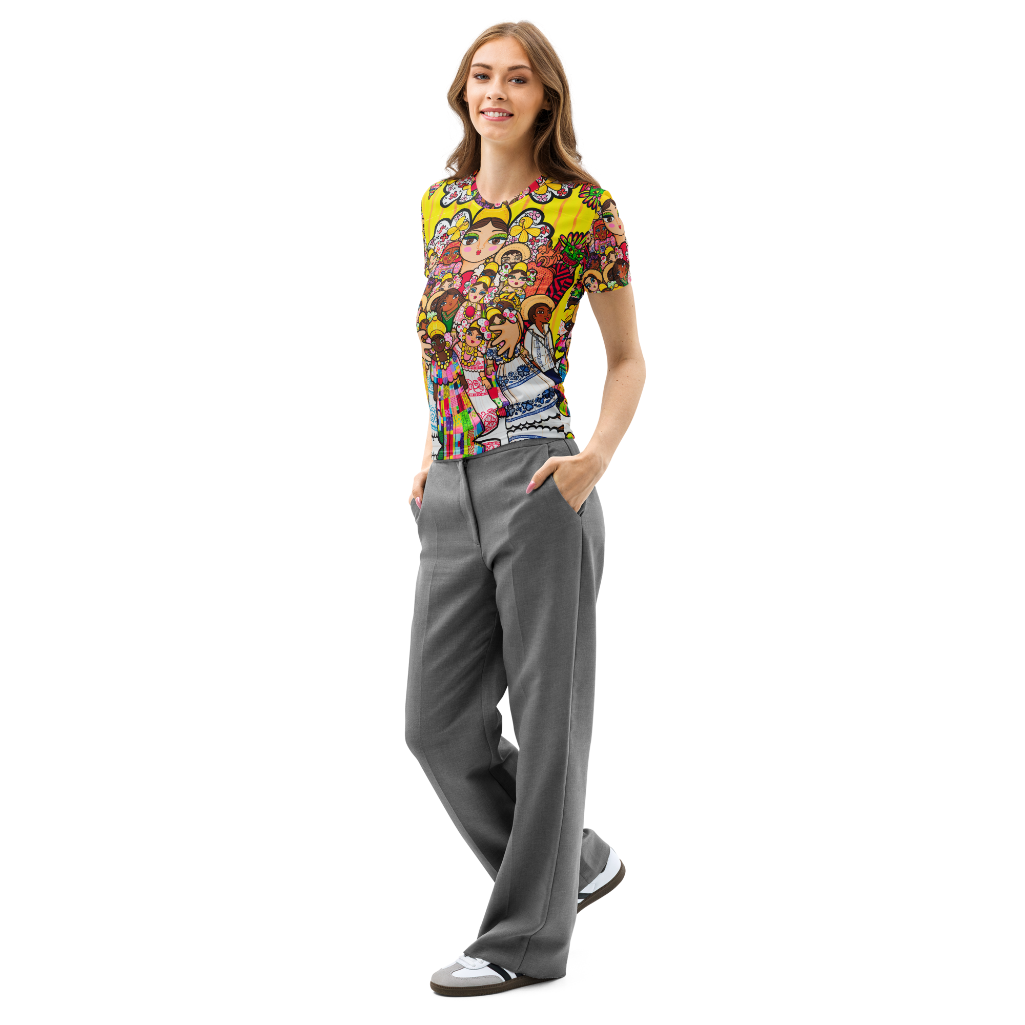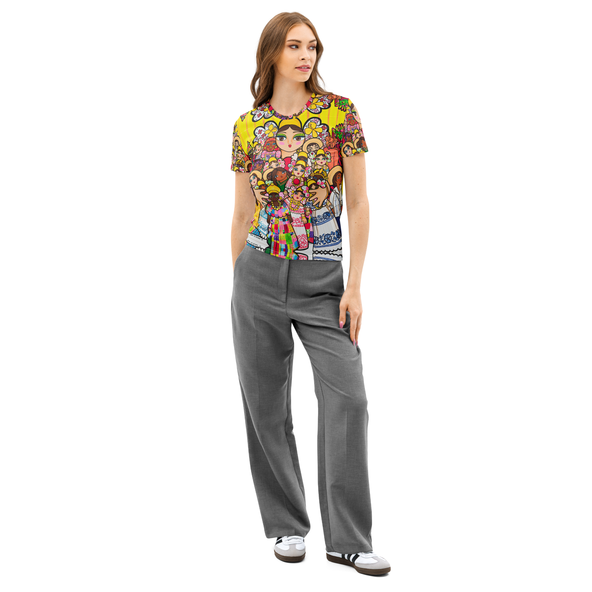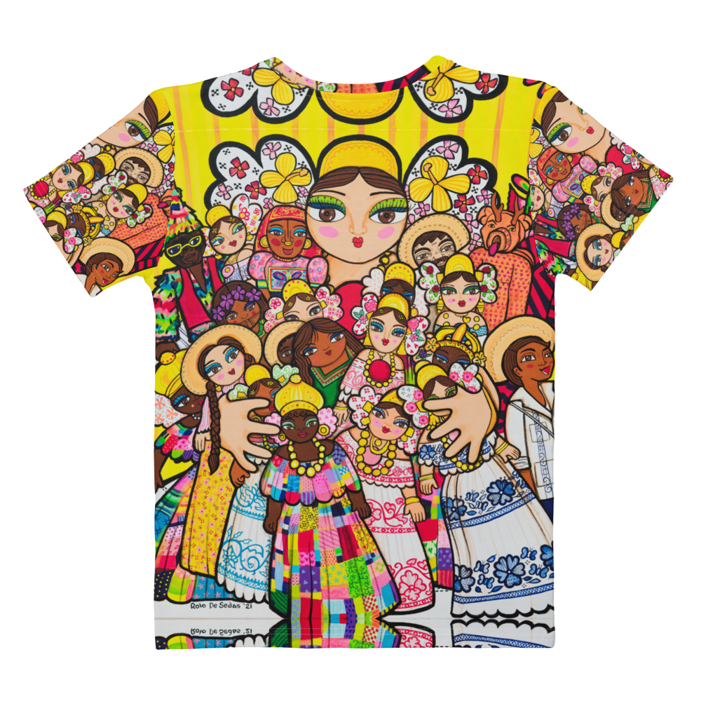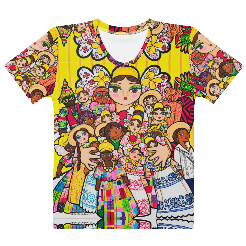 Camiseta de algodón de cuello redondo para mujer – Mami con Muñecos