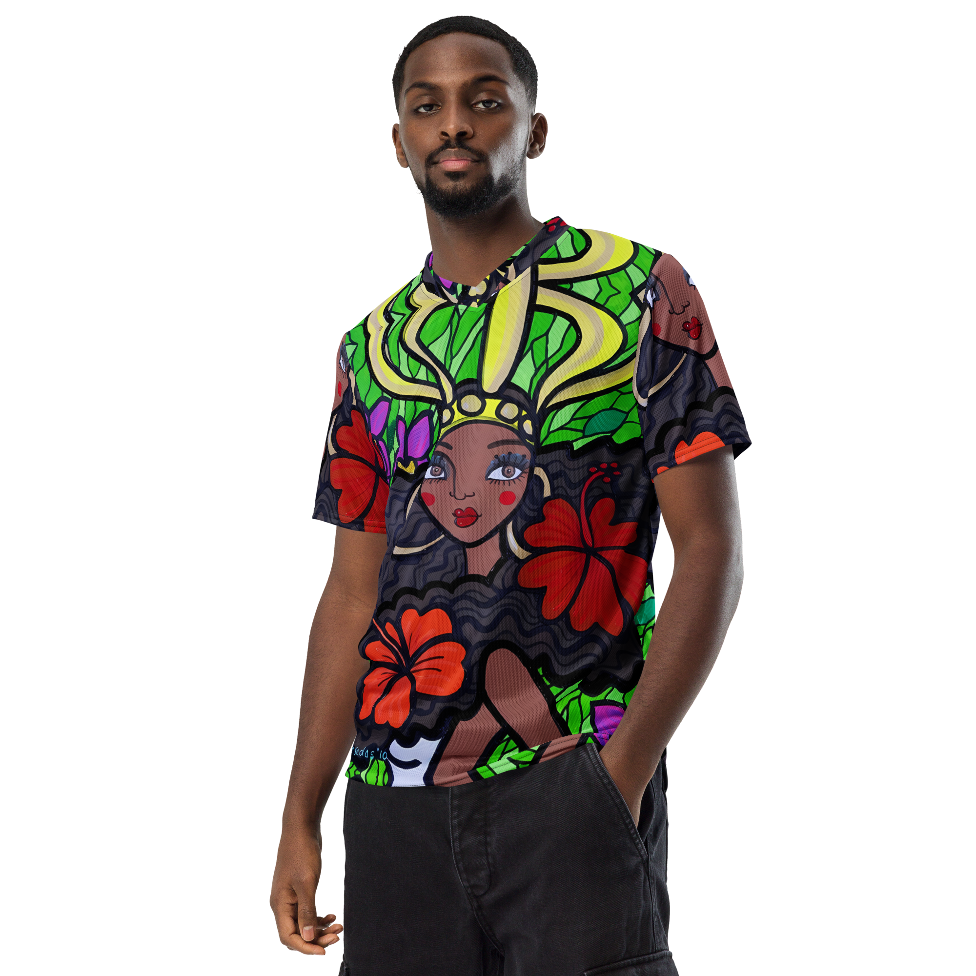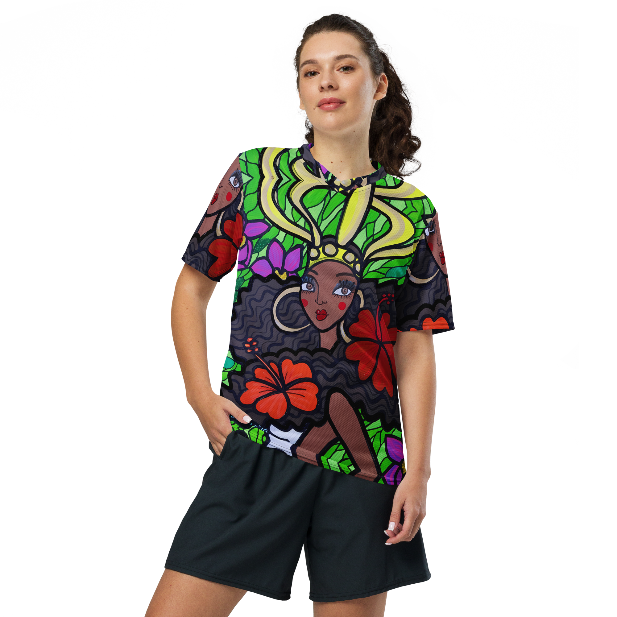 Looking for the perfect sports jersey? We have you covered—made of 100% recycled polyester fabric, this shirt is breathable, moisture-wicking, and has a double-layered v-neck collar that creates a premium look.