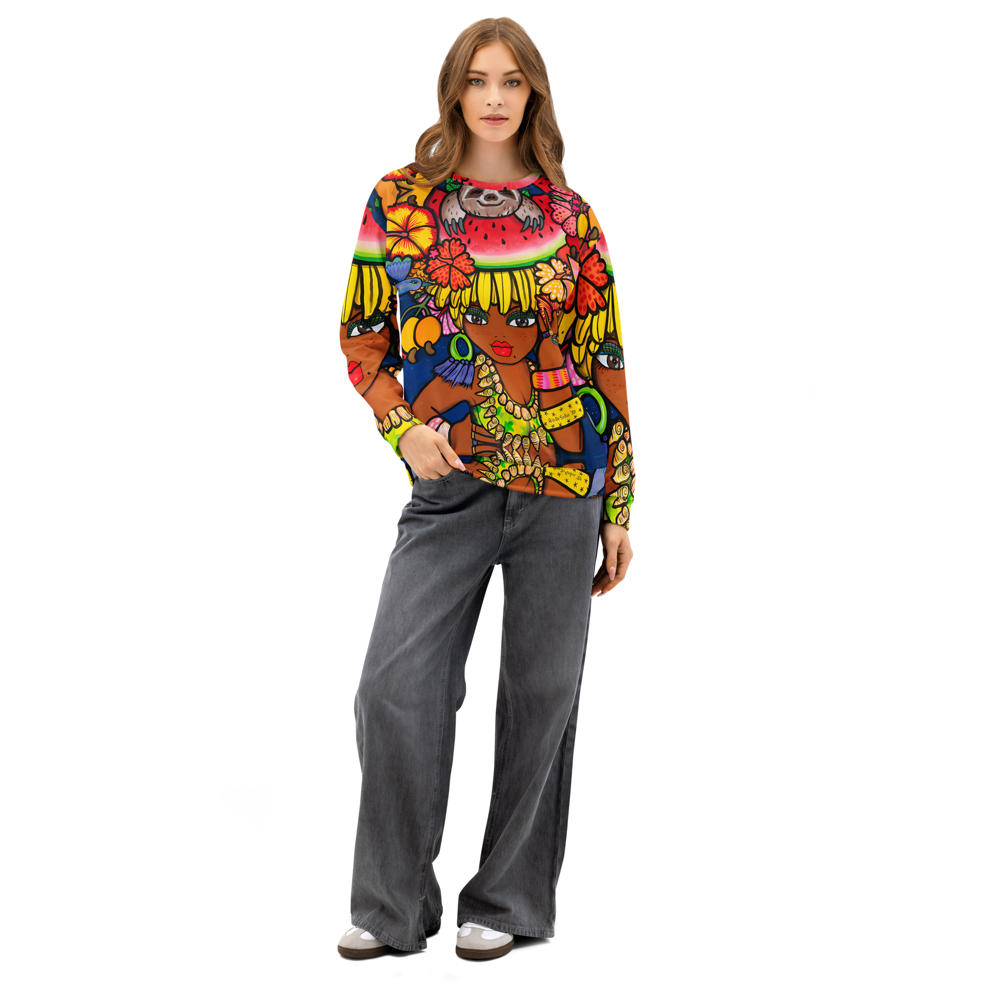 Soft, stretchy, and made to last – this cotton sweatshirt blends comfort and quality for effortless everyday style for all body types. Its clean shape and breathable fabric make it a go-to piece for casual outfits or standout streetwear designs.